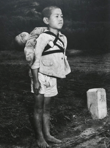 The younger child in the picture is dead. The older boy is his brother, and he’d carried his sibling on his back to a crematory. The older boy stayed and watched his brother burn yet refused to cry. He bit his lip so hard it bled.