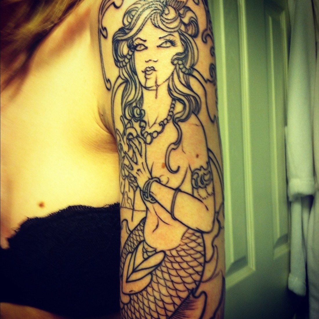 Mermaid eating a heart. Outline. Done by Edu Cerro at O’Reilly’s in Santa Cruz